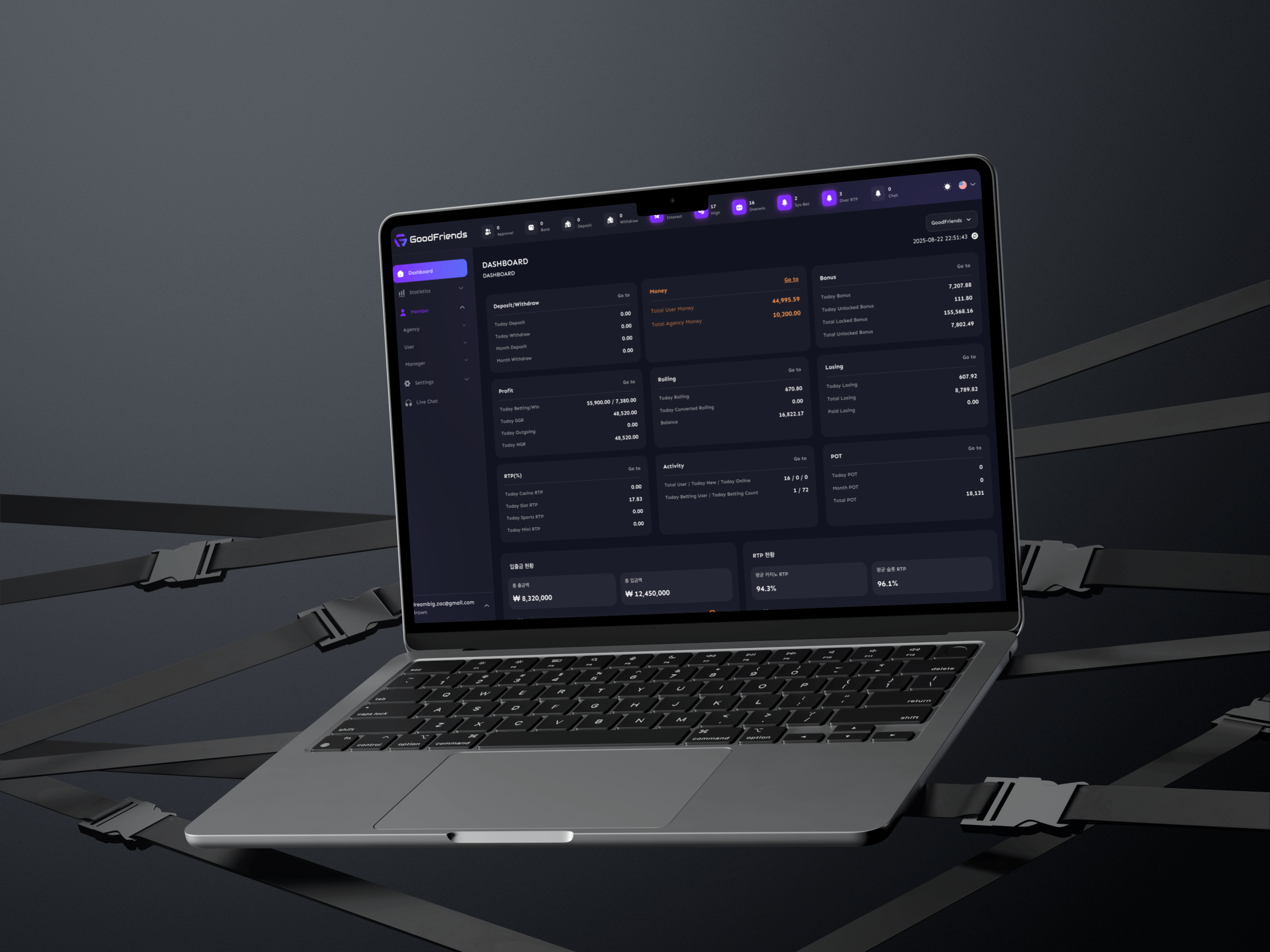 GoodFriends is a full-scale casino management SaaS platform used by multiple partner companies to manage players, track revenue, operate slot machines, and handle agency-based gambling structures. I was responsible for the entire frontend architecture, UI engineering, performance optimization, and all client-side modules. I also contributed to backend chat and real-time messaging features.